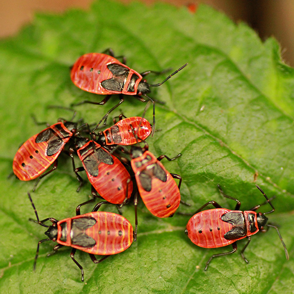 Fire bugs are not dangerous to humans or plants. They feed on plant juices and small insects (e.g. aphids). If they occur in large packs, they can damage plant buds.