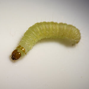 - The names of many moths are misleading: dried fruit and flour moths are unfortunately not limited to dried fruit and flour, but also to other foodstuffs, which become contaminated with eggs, net-like webs or larvae. The larvae are recognisable as yellowish, one centimetre long thread-like maggots with a black spot on their head. They contaminate food with faeces that may contain fungi and mites. The cocoon of the moth looks like an envelope made of thin and transparent paper.