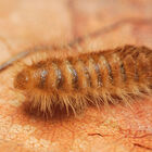 - While the beetles feed only on nectar and pollen, the larvae mainly eat proteins such as keratin. This exists in hair, feathers, silk, horns and wool. Therefore, the larvae can cause considerable damage to wool textiles, carpets or furs in the household. In fur, they mainly bite into the tips of the hairs. They leave irregular feeding holes, but no white webs typical of clothes moths.