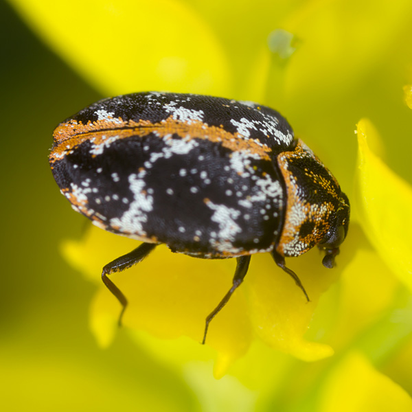 The common carpet beetle is one of the most common material pests in the living environment of humans. It prefers to lay its eggs on carpets, skins and textiles, where the larvae leave great damage in the form of feeding holes.